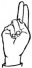 На ћирилици написано САЊА ТУБИН састоји се из 9 слова [?]. Исписано ћириличном једноручном азбуком за глувонеме: